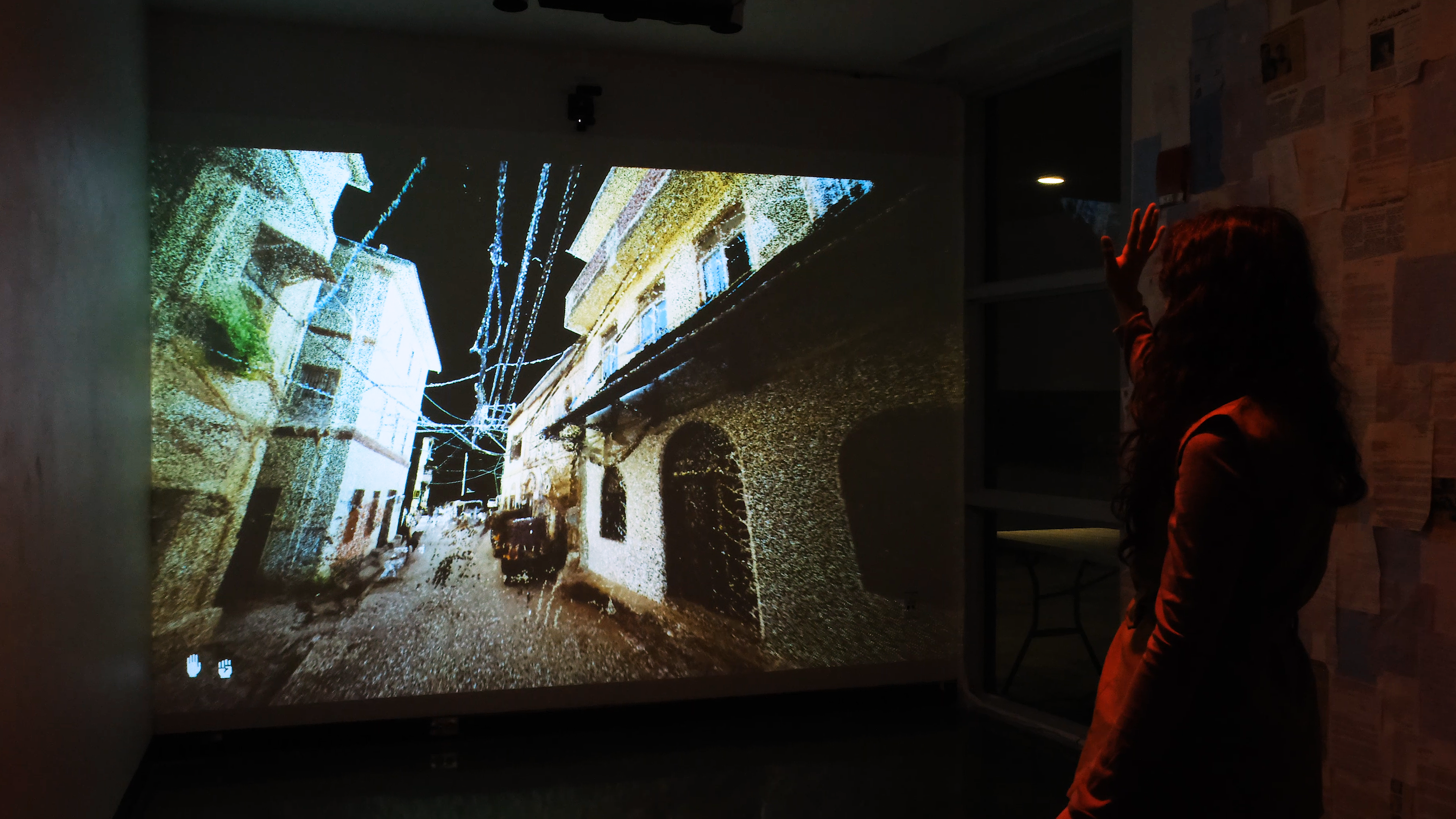 I used Touchdesigner to turn Asma’s field recordings and 3D scans of locations in Zanzibar into an interactive installation. Motion capture allows the audience to trigger events and use their hands to look around the environment.